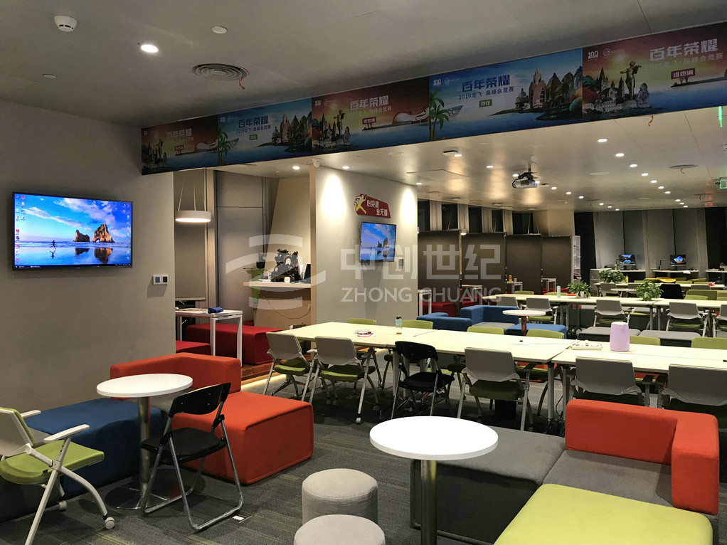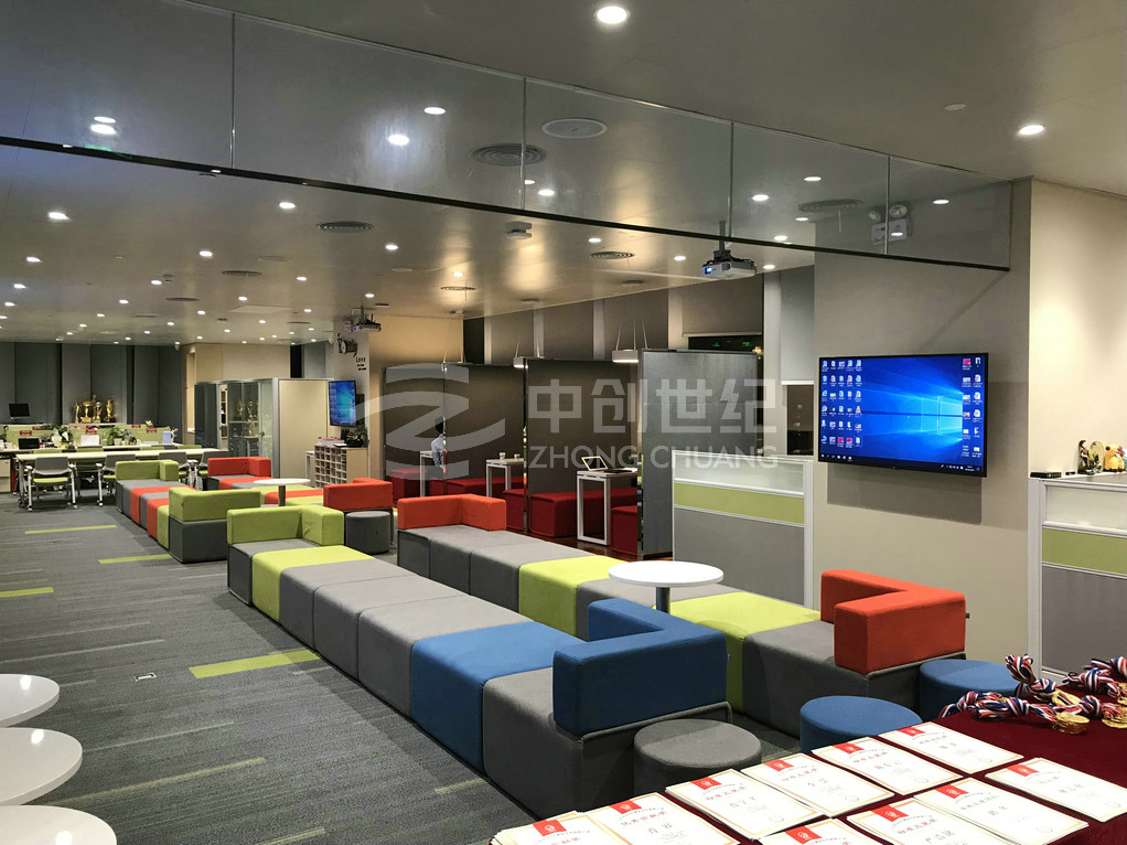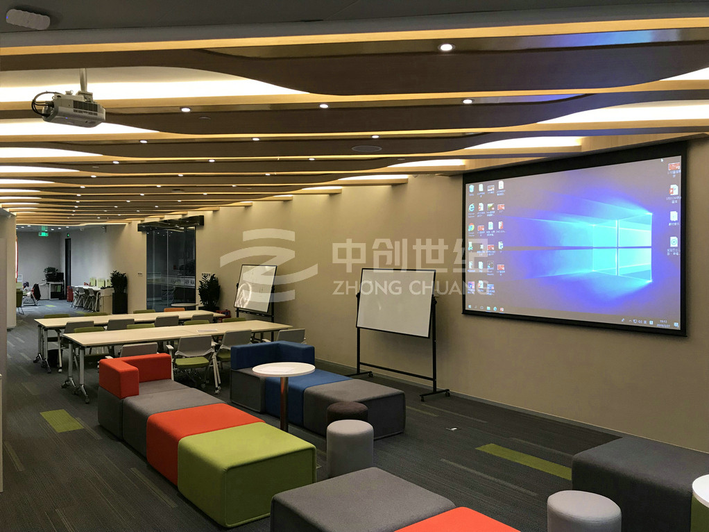 七個區(qū)域均可互聯(lián)互通,音視頻信號可以任意分配到不同的課室或區(qū)域,七個區(qū)域可同步播放顯示同一個信號源的信號,也可獨(dú)立顯示、播放不同信號源的信號,十一層與十層信號互通。