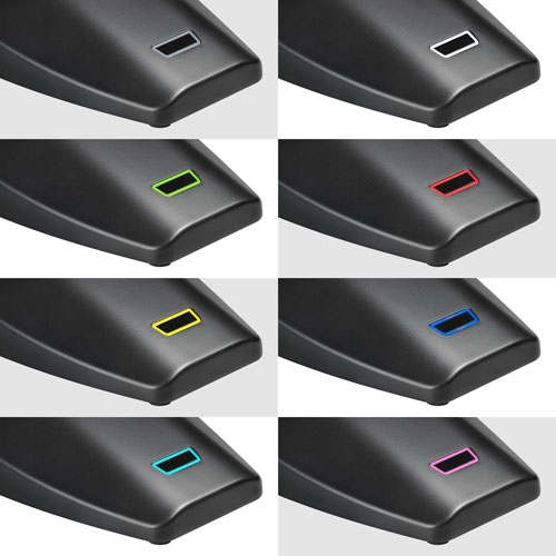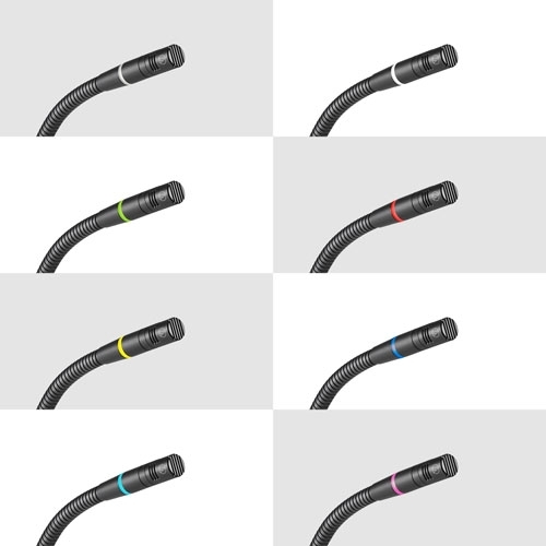② 臺架供電模組和鵝頸管組件均內置RGB LED燈,可指示話筒的開/關狀態(tài)。